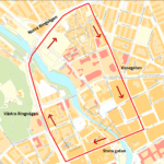 Kortegvägen är Västra Ringvägen – Norra Ringvägen – Vasagatan – Stora Gatan – Västra Ringvägen.